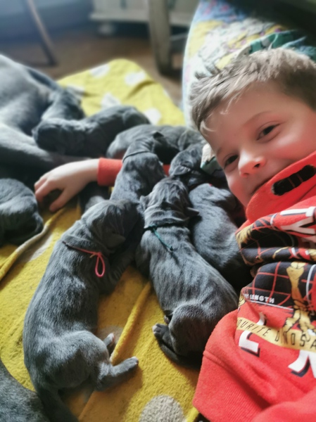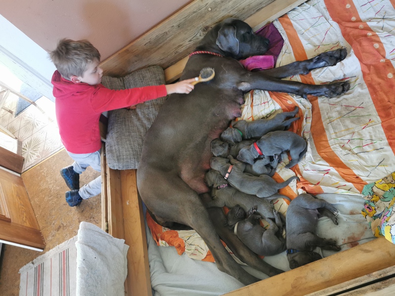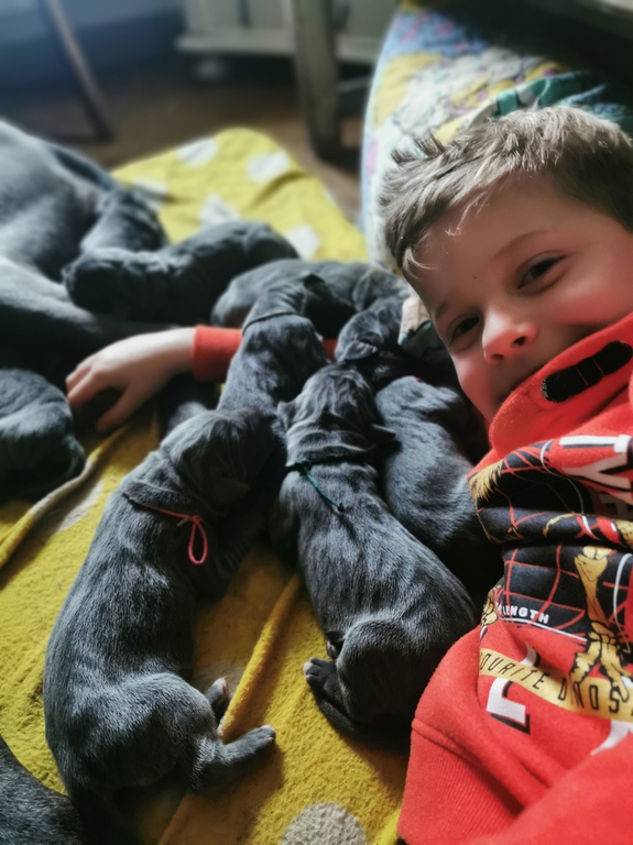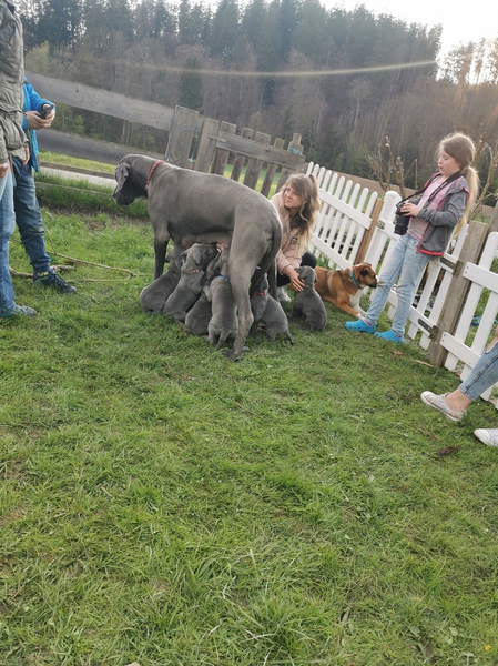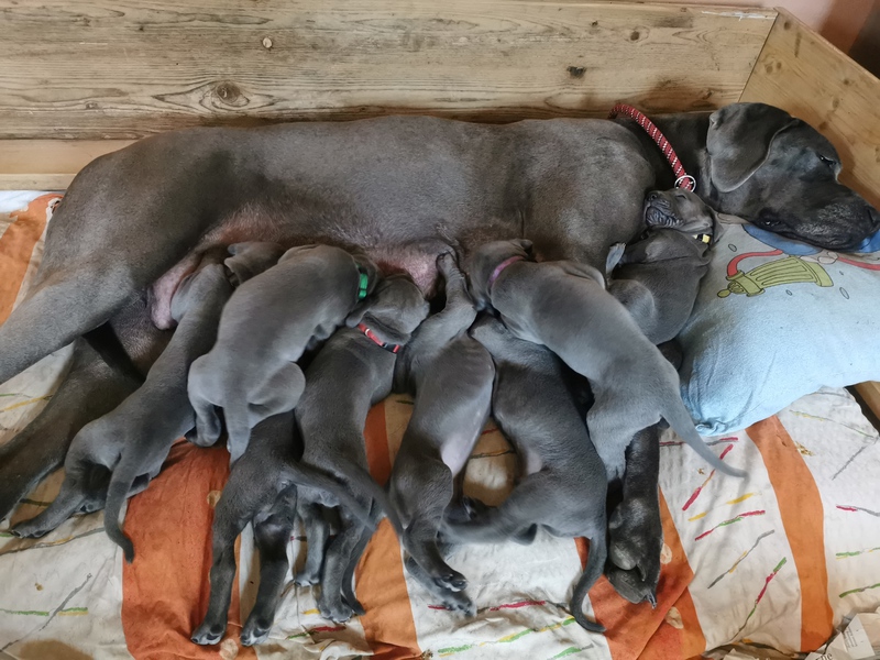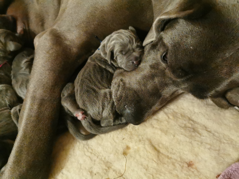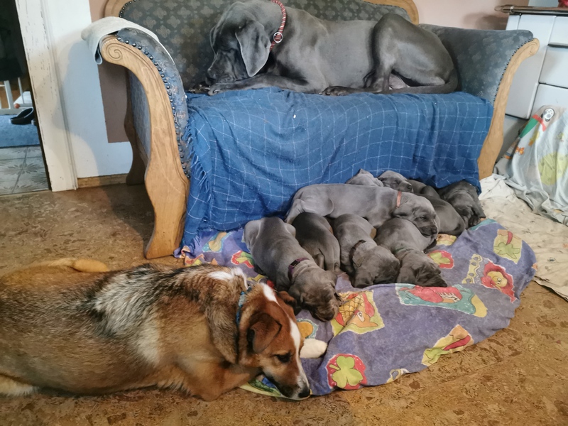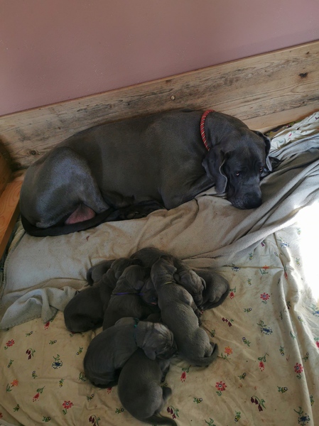 I Pünktchen hat heute von 8:53 - 14:38, 8 gesunde und muntere Babys zur Welt gebracht. ❤️ Die 3 Buben und 5 Mädels kamen in einer lehrbuchmäßigen Geburt zur Welt und Pünktchen hat es so toll gemacht! Sie ist eine sehr liebevolle und fürsorgliche Mama, was uns bei ihrem tollen Wesen schon klar war.